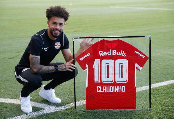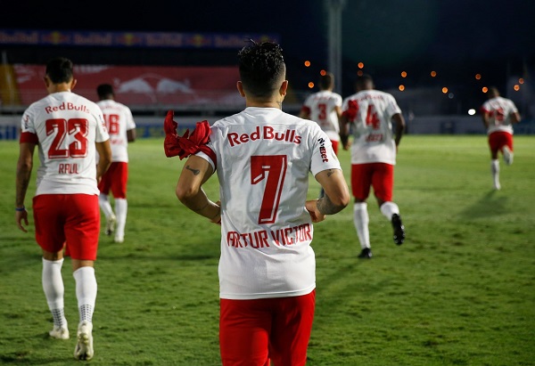 Antes da bola rolar, o meio-campo Claudinho, artilheiro isolado do Brasileirão 2020/2021, com 17 gols, recebeu uma homenagem da diretoria do clube pelo seu centésimo jogo vestindo a camisa do Massa Bruta.