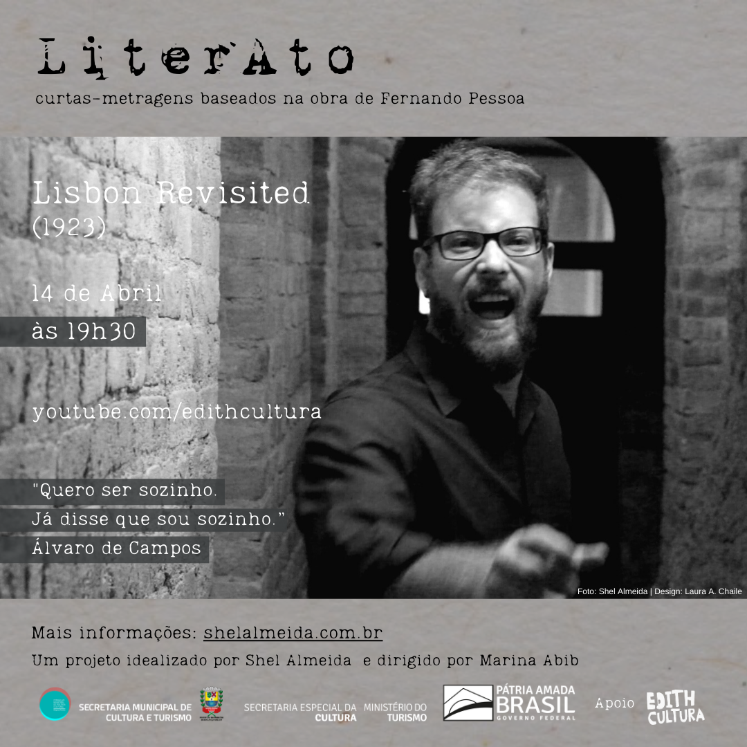 LiterAto é uma série em audiovisual que apresenta curtas-metragens baseados nas obras dos heterônimos do poeta português Fernando Pessoa. O projeto, idealizado pela jornalista Shel Almeida e dirigido pela dançarina Marina Abib, será exibido nas quartas-feiras de abril, sempre às 19h30, no canal do YouTube do Edith Cultura. A vasta obra de Fernando Pessoa é […]