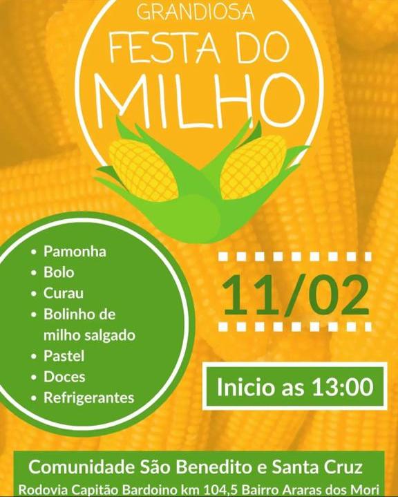 A Comunidade São Benedito e Santa Cruz, localizada na Rodovia Capitão Barduíno, km 104,5, no Bairro Araras dos Mori, em Bragança Paulista, realiza, no dia 11 de fevereiro (sábado), a grandiosa e tradicional Festa do Milho. As festividades terão início às 13h e contarão com a venda de vários pratos que têm como ingrediente principal […]