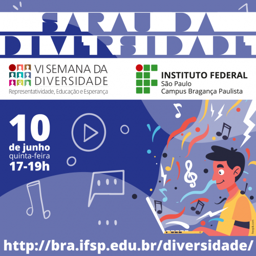 O Instituto Federal de Bragança Paulista (IFSP-BRA) promove, de 07 a 11 de junho, a VI Semana da Diversidade, com o tema Representatividade, Educação e Esperança. Em formato virtual, a ação poderá ser acompanhada pelo canal da instituição de ensino no YouTube ou pela página do projeto no facebook, pelos links: https://www.youtube.com/c/IFSPBRA/ e https://www.facebook.com/semanadadiversidadeifspbra De acordo a […]