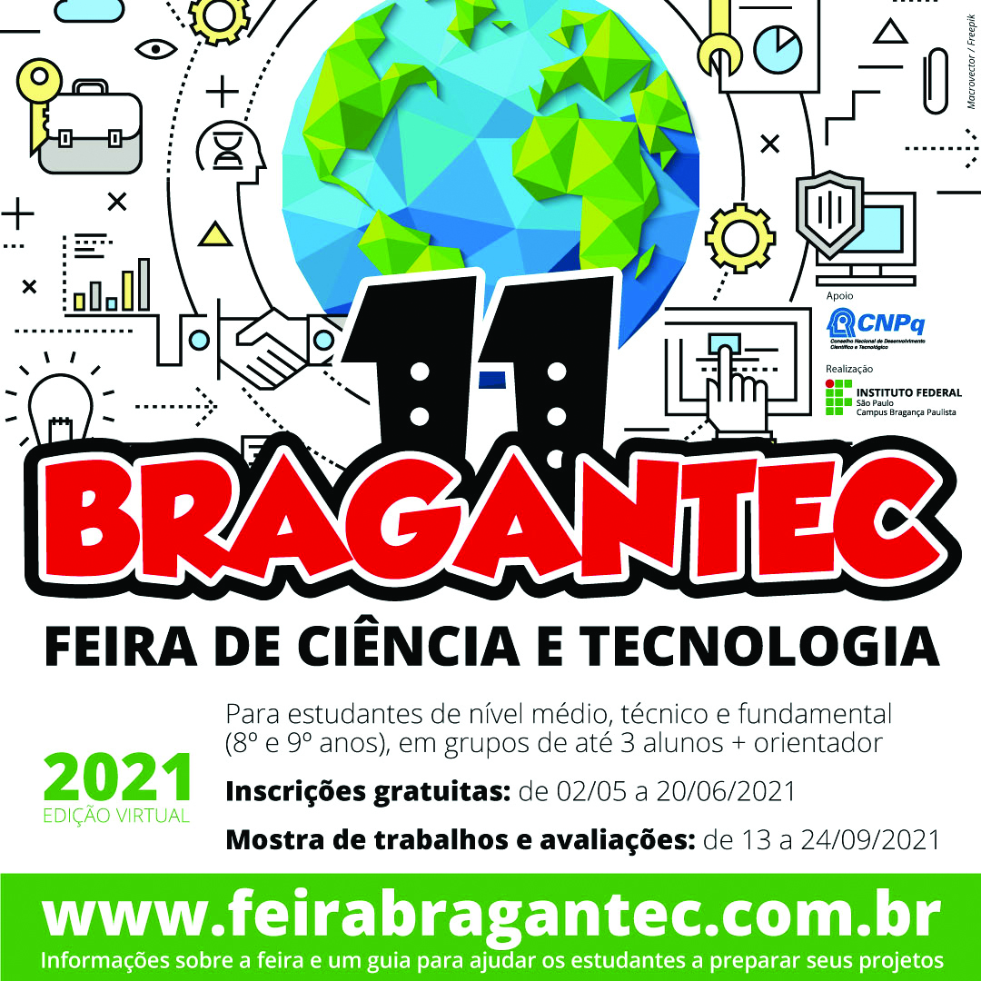 A 11ª Bragantec – Feira de Ciência e Tecnologia, realizada pelo Instituto Federal de Educação, Ciência e Tecnologia São Paulo (IFSP) – campus Bragança Paulista, está recebendo inscrições de projetos de estudantes do Ensino Fundamental (8º ou 9º ano), Médio e Técnico. As atividades devem ser nas áreas de Engenharias, Ciências da Natureza e Exatas, […]