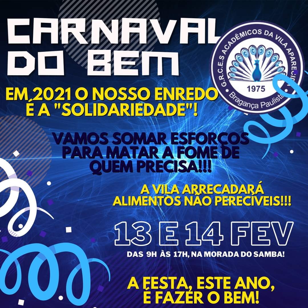 Com o cancelamento do Carnaval em Bragança Paulista e em todo o país neste ano devido à pandemia do novo coronavíus, a Escola de Samba Acadêmicos da Vila deu uma pausa no samba, mas segue com a solidariedade. Neste sábado, 13, e domingo, 14, a diretoria da agremiação carnavalesca teve a ideia de realizar o […]