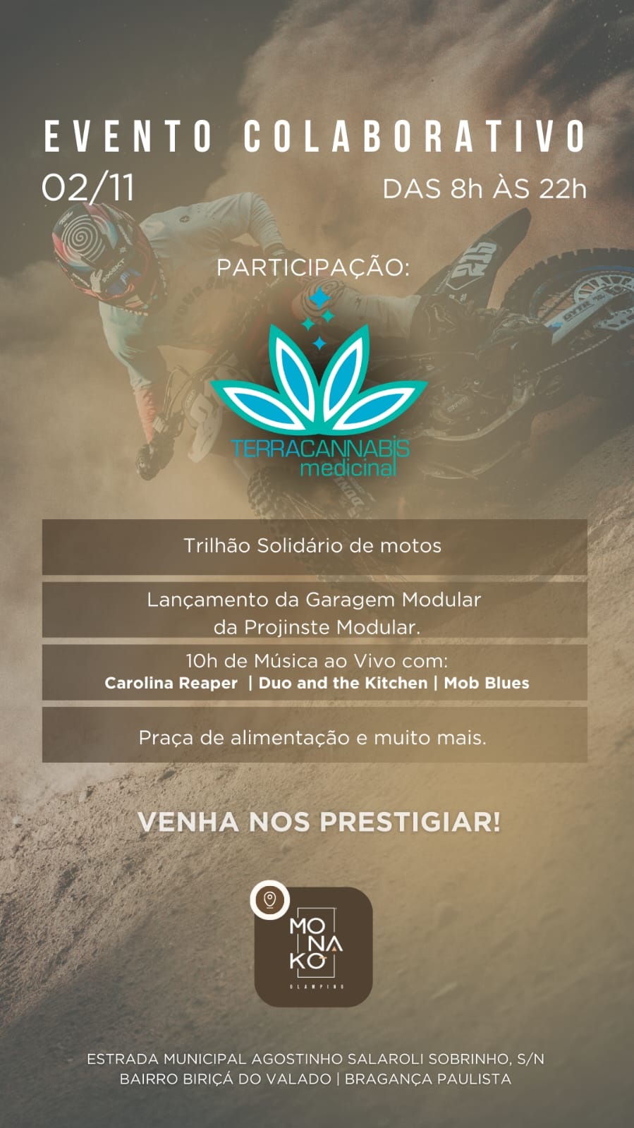 No próximo sábado, 2 de novembro, feriado de Finados, Bragança Paulista sediará o “Evento Colaborativo”, que reunirá esporte, música, workshops e gastronomia. Organizado por Monakó Glamping & Dona Ignácia Cozinha Rústica, o evento será realizado na Estrada Municipal Agostinho Salaroli Sobrinho, s/n, no bairro Biriçá do Valado. A programação começa às 8h e se estende […]