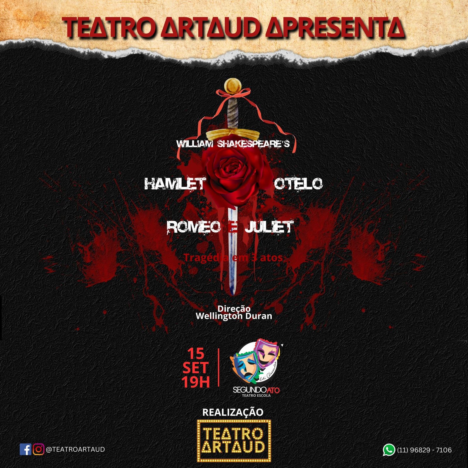 No domingo, 15 de setembro, a Cia. de Teatro Artaud em parceria com o Teatro Escola Segundo Ato traz ao público uma nova e instigante montagem de três das mais emblemáticas tragédias de William Shakespeare – Hamlet, Otelo e Romeu e Julieta – em um espetáculo intitulado “Tragédia em 03 Atos”. Sob a direção do […]