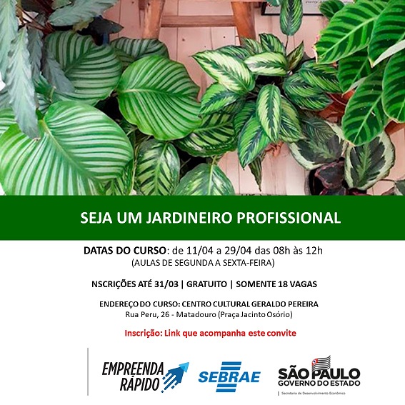 Cursos de Reiki e jardineiro profissional acontecem em março e abril, respectivamente A Prefeitura de Bragança Paulista, por meio do Fundo Social de Solidariedade do Município (FSSM), irá oferecer cursos gratuitos em parceria com o Sebrae/Empreenda Rápido e Senac. Serão oportunidades para uma ótima formação por meio da estrutura do Senac, que se torna uma […]