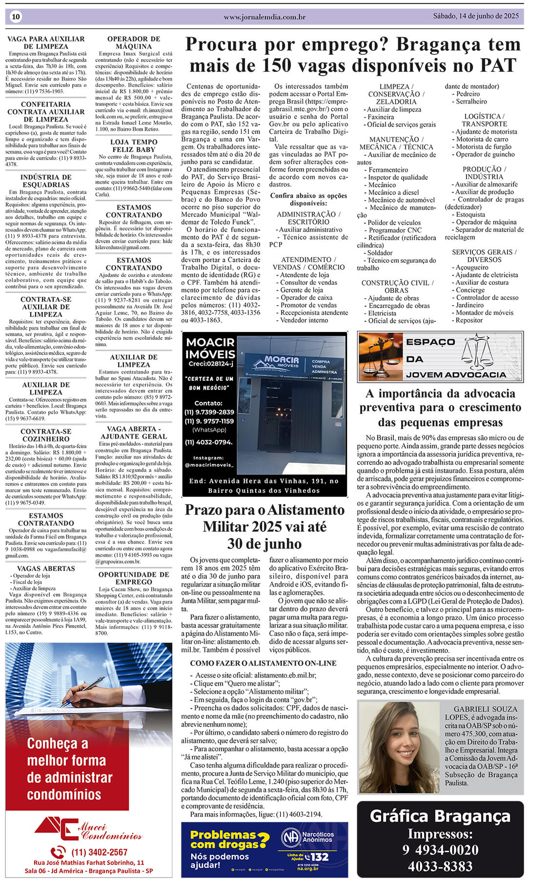 Centenas de oportunidades de emprego estão disponíveis no Posto de Atendimento ao Trabalhador (PAT) de Bragança Paulista. De acordo com o PAT, são 152 vagas na região, sendo 151 em Bragança Paulista e uma em Vargem. Os trabalhadores interessados têm até o dia 20 de junho para se candidatar. O atendimento presencial do PAT, do […]
