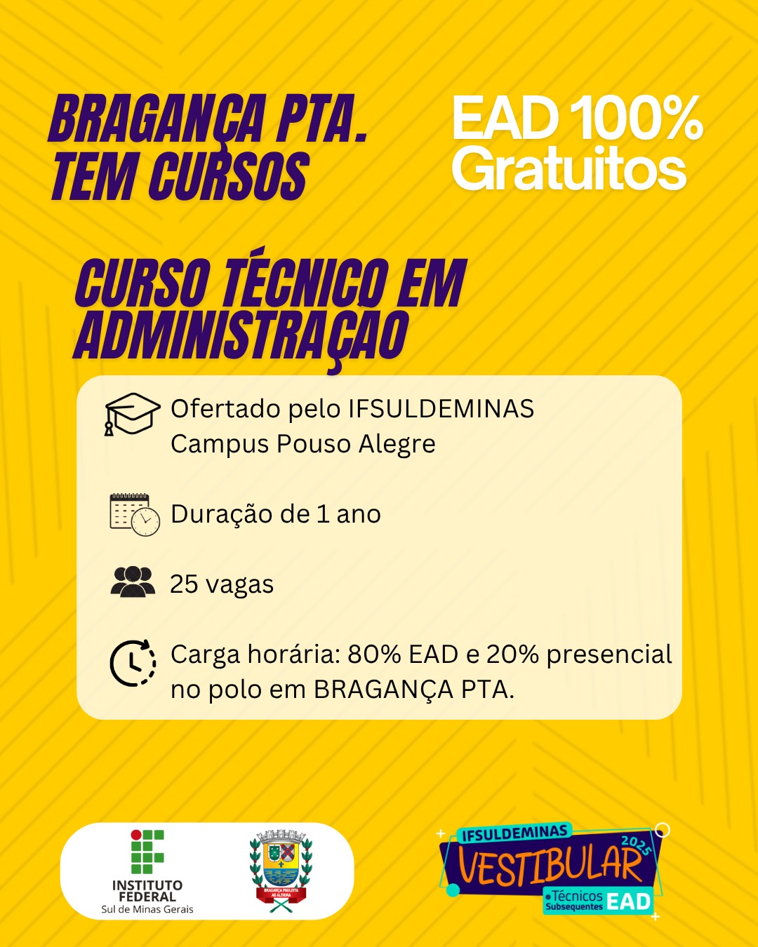 Estão abertas, até a próxima quarta-feira, 18, as inscrições para o processo seletivo dos cursos técnicos gratuitos na modalidade Educação a Distância (EaD), oferecidos pela Prefeitura em parceria com o Instituto Federal do Sul de Minas Gerais (IfSuldeMinas). A oportunidade é voltada para estudantes que já concluíram o Ensino Médio e desejam se capacitar profissionalmente […]
