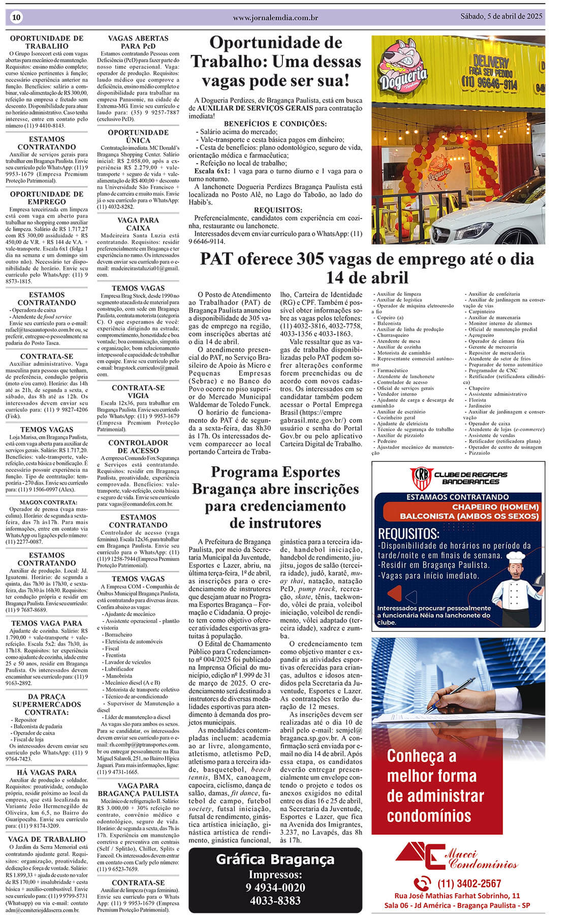 A Dogueria Perdizes, de Bragança Paulista, está em busca de AUXILIAR DE SERVIÇOS GERAIS para contratação imediata! Benefícios e Condições: – Salário acima do mercado; – Vale-transporte e cesta básica pagos em dinheiro; – Cesta de benefícios: plano odontológico, seguro de vida, orientação médica e farmacêutica; – Refeição no local de trabalho; Escala 6×1: 1 […]