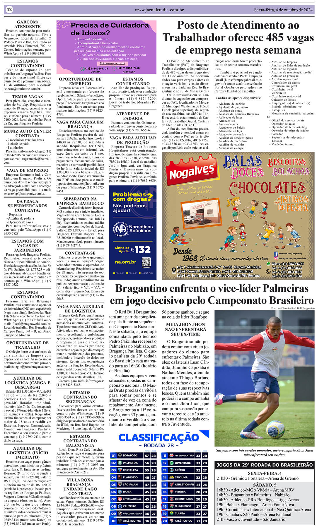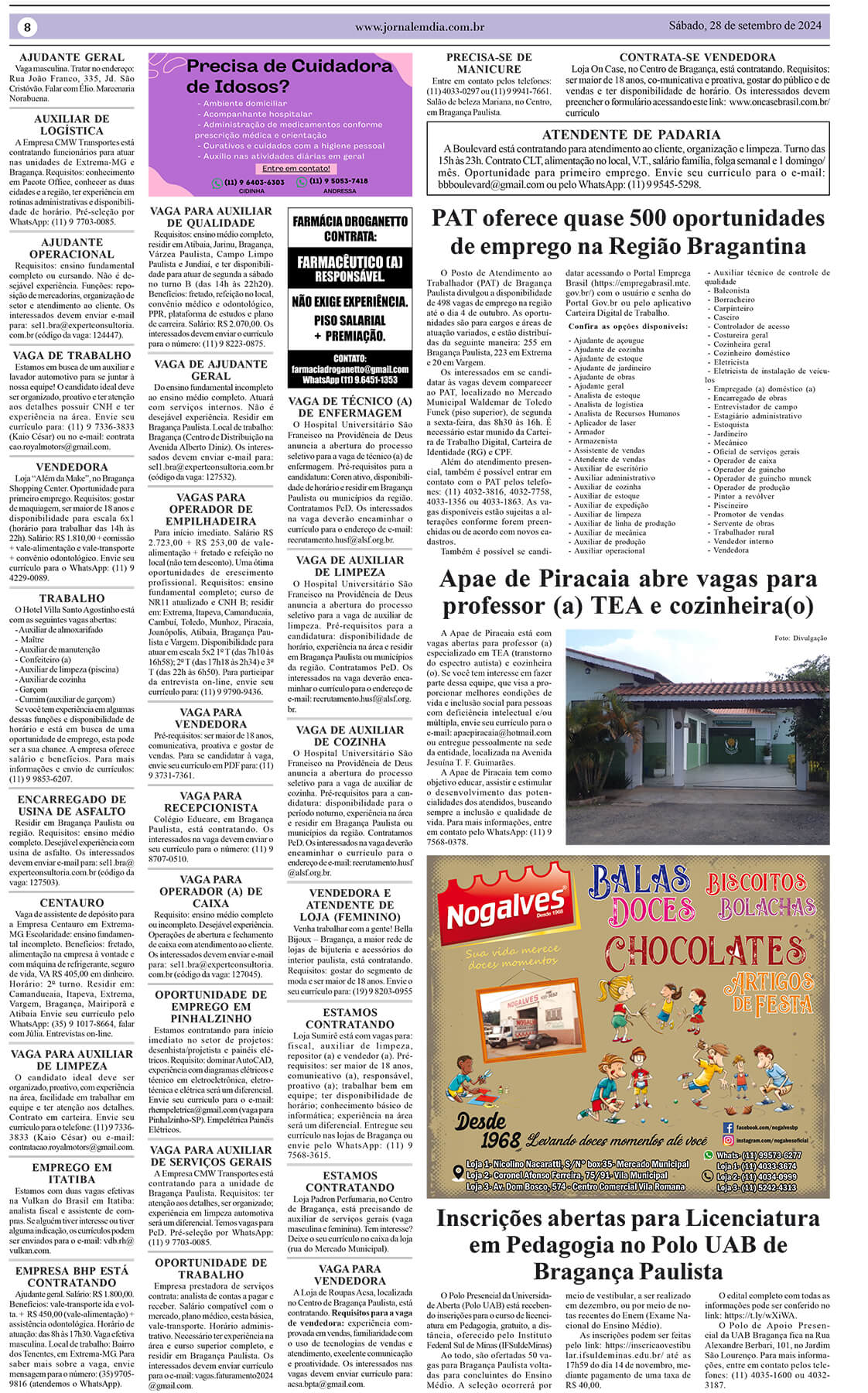 O Posto de Atendimento ao Trabalhador (PAT) de Bragança Paulista divulgou que, entre os dias 25 de setembro e 4 de outubro de 2024, estão disponíveis 498 vagas de emprego na região. Desse total, 255 vagas são para Bragança Paulista, 223 para Extrema e 20 para Vargem. Essas oportunidades abrangem diversas áreas profissionais, possibilitando o […]