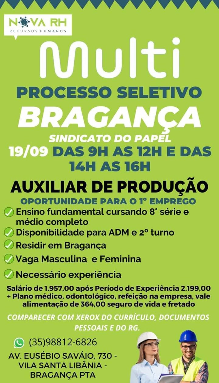 A Agência Nova RH – Recursos Humanos realizará entrevistas de emprego na sede do Sindicato do Papel de Bragança Paulista nesta quinta-feira, 19 de setembro, em dois períodos: de manhã, das 9h às 12h, e à tarde, das 14h às 17h. O processo seletivo tem como objetivo preencher vagas para o cargo de Auxiliar de […]