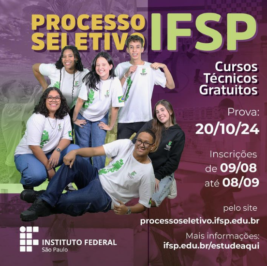 O Instituto Federal de São Paulo (IFSP) está com inscrições abertas para o processo seletivo de cursos técnicos para o primeiro semestre de 2025. São oferecidas 7.037 vagas distribuídas em 39 campi e dois polos da Universidade Aberta do Brasil (UAB): Araraquara, Avaré, Barretos, Bauru, Birigui, Boituva, Bragança Paulista, Campinas, Campos do Jordão, Capivari, Caraguatatuba, […]