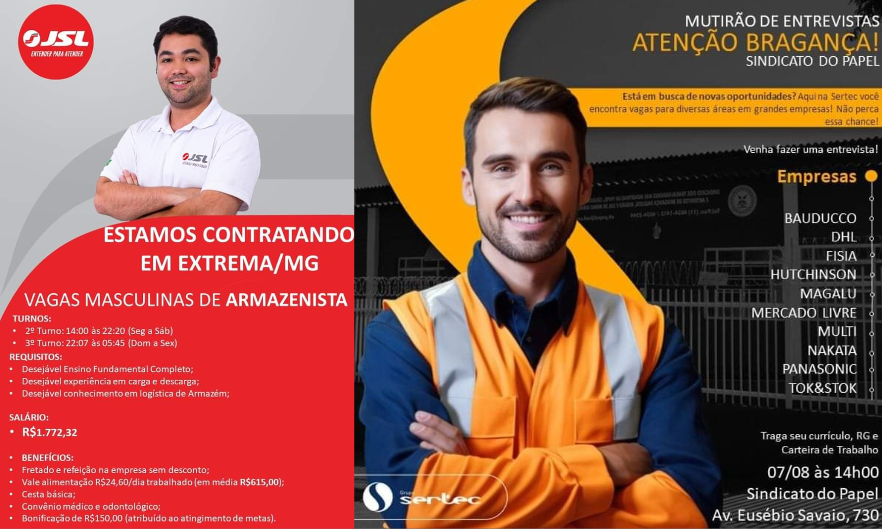 Nesta quarta-feira, 7 de agosto, ocorrerão mais duas sessões de entrevistas de emprego na sede do Sindicato do Papel de Bragança Paulista, para fechar a semana com chave de ouro. O primeiro processo seletivo será com a Empresa JSL, que estará selecionando funcionários do sexo masculino para a função de Armazenista. As entrevistas ocorrerão das […]