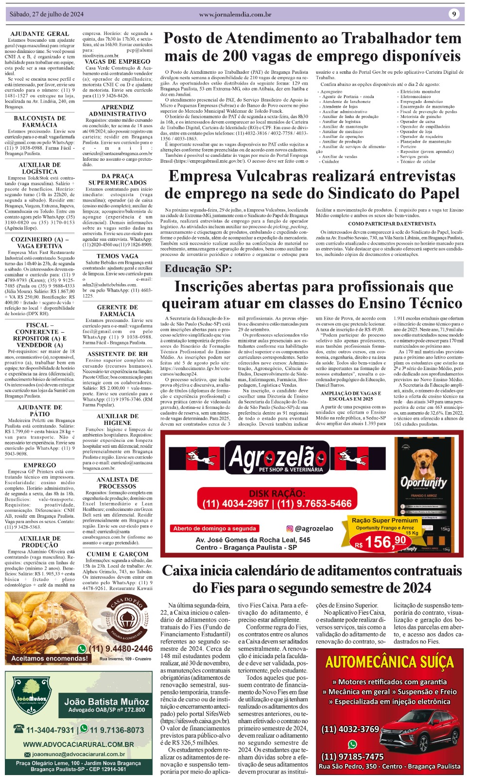 Nesta quarta-feira, 31 de julho, o Sindicato do Papel de Bragança Paulista mais uma vez será o local para um mega Mutirão de Entrevistas durante todo o dia para selecionar novos colaboradores para dezenas de empresas da região, com diversas vagas de emprego. GRUPO SERTEC A primeira bateria de entrevistas ocorrerá no período da manhã, […]