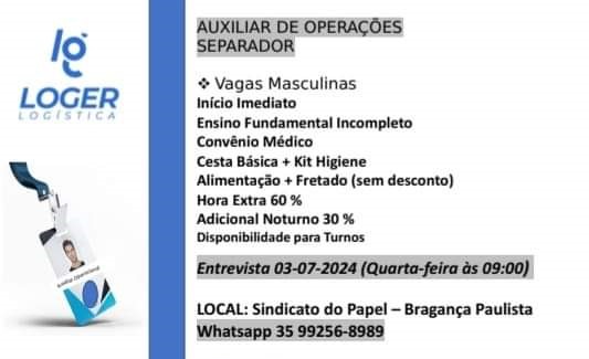 Nesta terça-feira, 2 de julho, o Sindicato do Papel de Bragança Paulista receberá duas sessões de entrevistas de empregos, com a presença do Grupo RH + no período da manhã e da Loja Casa Verde Construção e Acabamento à tarde. Confira as oportunidades disponíveis: PRIMEIRAS ENTREVISTAS COM O GRUPO RH + O primeiro processo seletivo […]