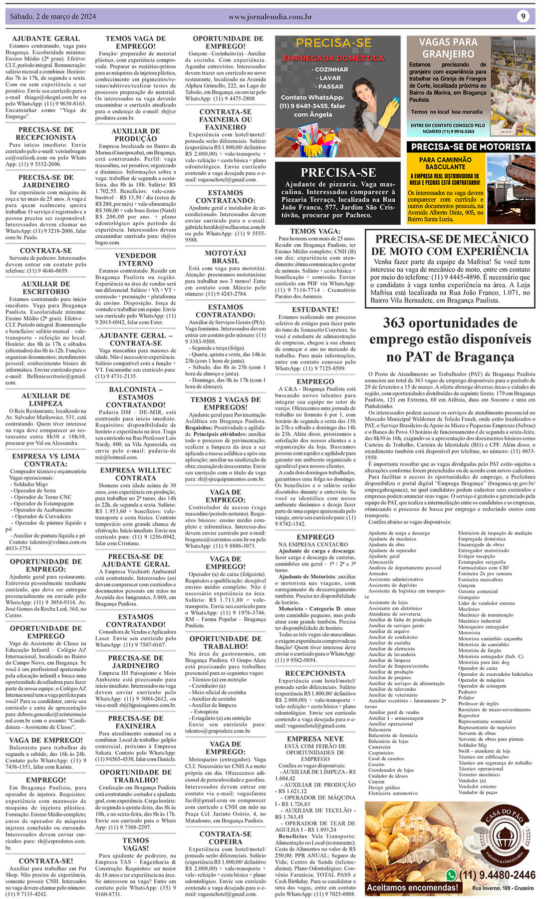 O Posto de Atendimento ao Trabalhador (PAT) de Bragança Paulista anuncia um total de 363 vagas de emprego disponíveis para a semana de 29 de fevereiro a 15 de março. Esta oferta abrange diversas áreas e localidades na região, com oportunidades distribuídas da seguinte forma: 179 vagas em Bragança Paulista, 121 em Extrema, 60 em […]