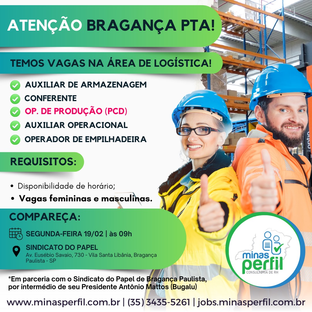 Na próxima segunda-feira, dia 19 de fevereiro, o Sindicato do Papel de Bragança Paulista, sob a coordenação do presidente Antônio Bugalu, estará realizando entrevistas de emprego em parceria com as Empresas Id Logistic e Solistica para preencher dezenas de vagas em diversas funções, tais como Auxiliar de Armazenagem, Conferente, Operador de Produção PCD, Auxiliar Operacional […]