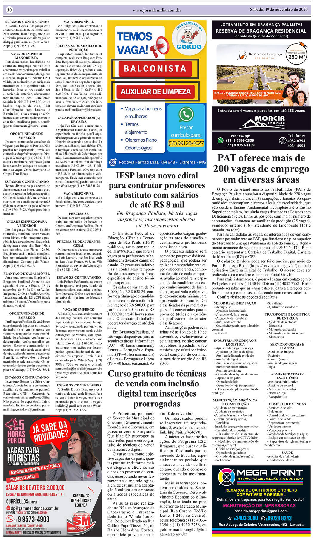 O Posto de Atendimento ao Trabalhador (PAT) de Bragança Paulista anuncia uma excelente notícia para quem busca colocação no mercado de trabalho: estão disponíveis 228 vagas de emprego, distribuídas em 87 ocupações diferentes. As oportunidades contemplam candidatos com diversos níveis de escolaridade, desde o ensino fundamental incompleto até o ensino superior completo, incluindo vagas destinadas […]