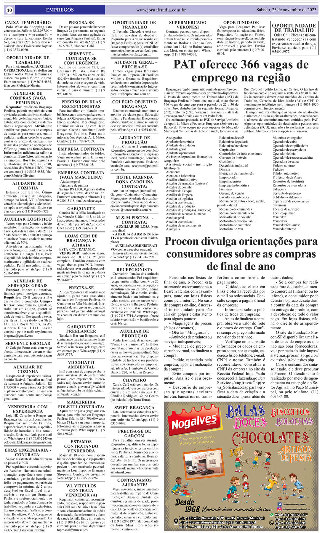 Bragança e região encerrarão o mês de novembro com mais de trezentas oportunidades de trabalho disponíveis. O Posto de Atendimento ao Trabalhador (PAT) de Bragança Paulista informa que, no total, estão abertas 366 vagas de emprego para o período de 22 a 30 de novembro. O PAT destaca que as opções de trabalho estão distribuídas […]