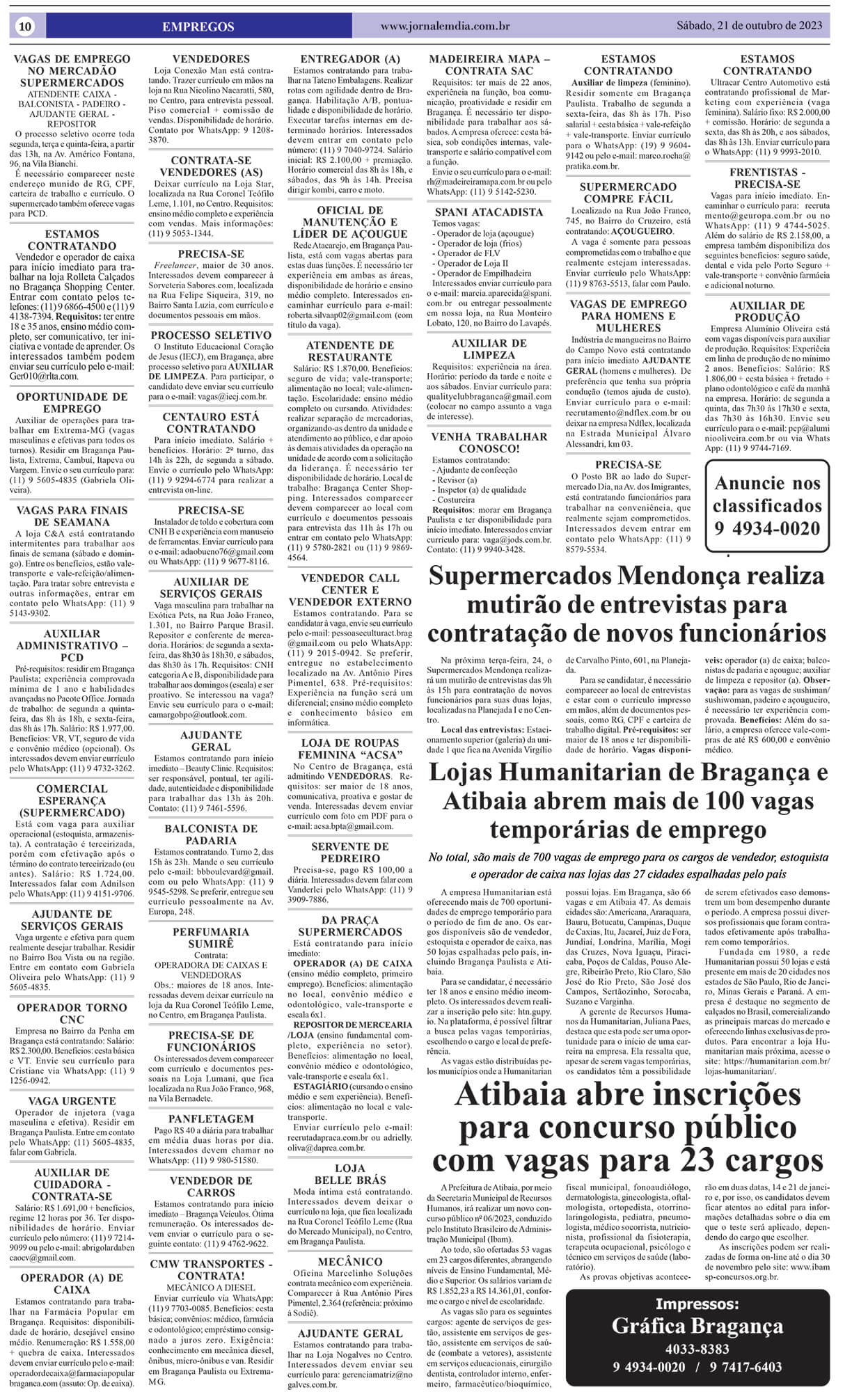 O Posto de Atendimento ao Trabalhador (PAT) de Bragança Paulista informa sobre as vagas disponíveis no período de 17 a 20 de outubro. São 325 vagas disponíveis na região, sendo 63 em Bragança Paulista, 261 em Extrema e uma em Monte Verde. O atendimento presencial do PAT, do Serviço Brasileiro de Apoio às Micro e […]