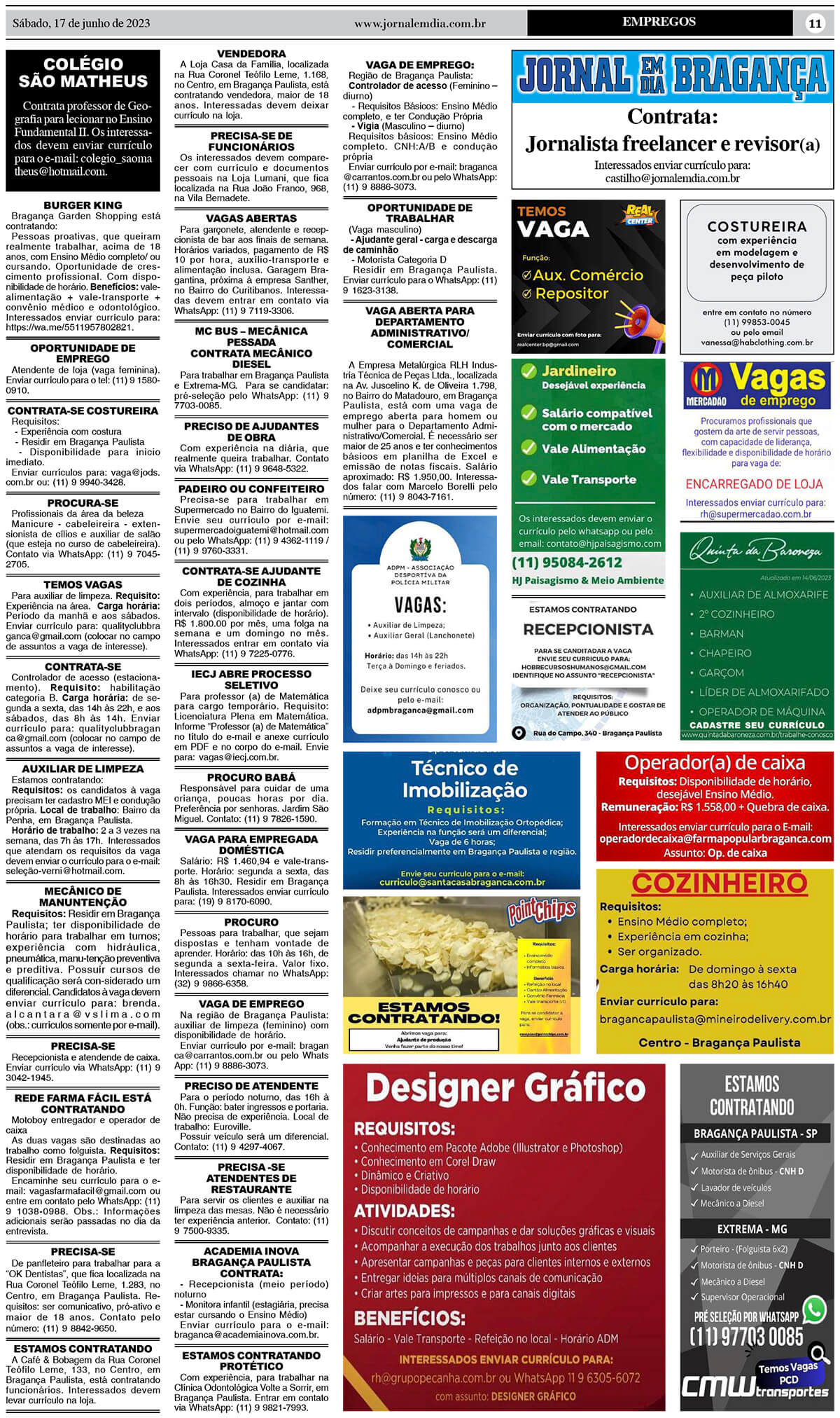 O Posto de Atendimento ao Trabalhador (PAT) de Bragança Paulista informa as vagas ofertadas até o dia 26 de junho. São 177 oportunidades disponíveis na região, sendo 122 em Bragança Paulista, 51 em Extrema, três em Nazaré Paulista e duas em Atibaia. O atendimento presencial do PAT, do Serviço Brasileiro de Apoio às Micro e […]