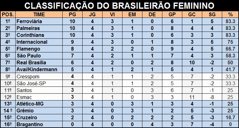 O time feminino do Red Bull Bragantino continua sem somar pontos no Campeonato Brasileiro da Série A. Em quatro rodadas disputadas, a equipe sofreu quatro derrotas. A última foi em casa, para o Cresspom-DF, pelo placar de 1 a 0, resultado que empurrou a equipe para a última colocação na classificação geral do Brasileirão Feminino […]