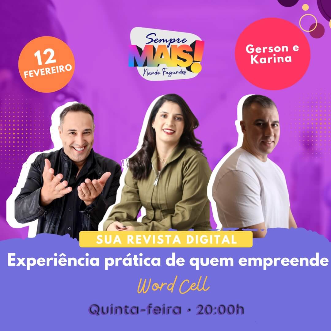 O Podcast “Sempre Mais” recebe, nesta quinta-feira, 13, os empresários Karina e Gerson, proprietários da loja Word Cell, de Bragança Paulista. O programa é apresentado pelo influenciador digital Nando Fagundes e terá como tema central “A experiência prática de quem empreende”. A transmissão será ao vivo, diretamente dos estúdios da FP Produtora, com exibição pelo […]