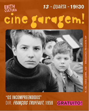 Nesta quarta-feira, 13, e no domingo, 17, às 19h30, em continuidade à programação da mostra “Luz Mestra”, a Garaginha do Edith exibe os filmes Os Incompreendidos, de François Truffaut, e A Estrada da Vida, de Federico Fellini, respectivamente. Os Incompreendidos – conta a história do jovem parisiense Antoine Doinel, para quem a vida não passa […]