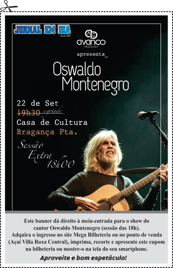 Artista fará duas apresentações na Casa de Cultura No dia 22, domingo, o cantor Oswaldo Montenegro se apresenta na Casa de Cultura de Bragança Paulista. Inicialmente, o artista faria sessão única, às 19h30, mas, devido ao sucesso de venda dos ingressos, que já estão esgotados, haverá apresentação extra, às 18h. A serenata marcou a vida […]