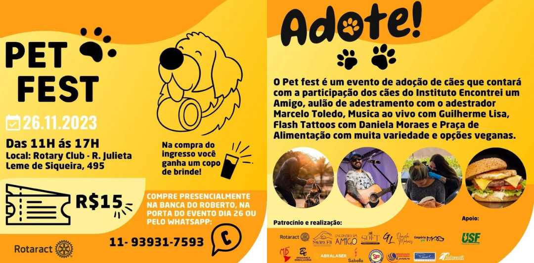 No próximo domingo, 26, das 11h às 17h, o Rotaract Clube Bragança Paulista realizará um evento importante voltado para os Pets. Trata-se do Pet Fest 2023, que ocorrerá na sede do Rotary Clube, localizada na Rua Julieta Leme de Siqueira, 495, no bairro Santa Luzia. De acordo com os organizadores, o objetivo principal do evento […]