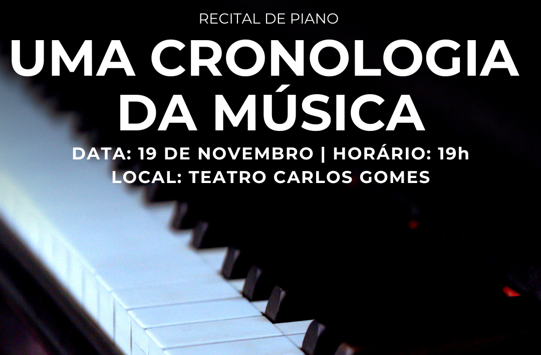 MÚSICA TEATRO CARLOS GOMES RECEBE O RECITAL DE PIANO “UMA CRONOLOGIA DA MÚSICA” Neste domingo, 19, às 19h, o Teatro Carlos Gomes receberá o recital gratuito de piano intitulado “Uma Cronologia da Música”. Com obras de Handel, Kalinnikov, Schubert, Queen, Beatles, Metallica, Michael Jackson, Kate Bush, Adele, Elton John, John Williams, Chiquinha Gonzaga, Paulo Gazzaneo […]