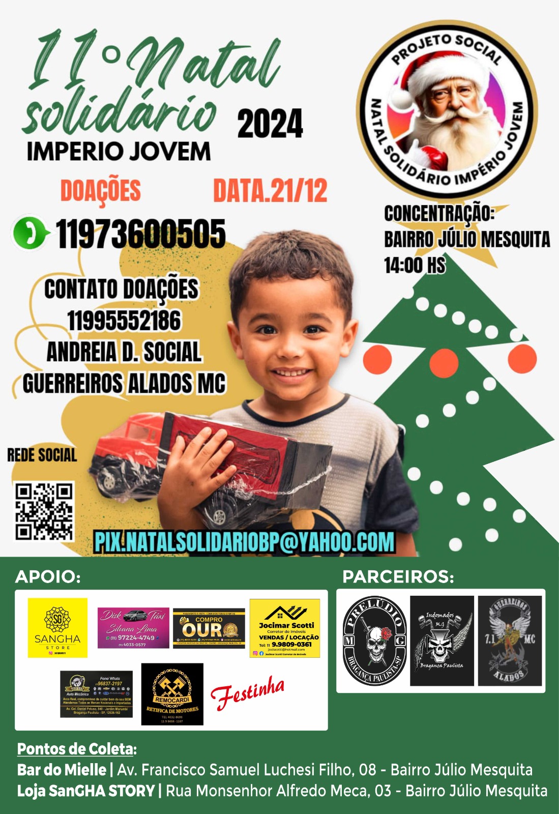 A 11ª edição do Natal Solidário Império Jovem está a todo vapor, com a arrecadação de brinquedos novos e usados, em bom estado de conservação, para alegrar crianças de diversos bairros de Bragança Paulista neste Natal. O evento principal está programado para o sábado, 21 de dezembro, com concentração a partir das 14h, na Rua […]