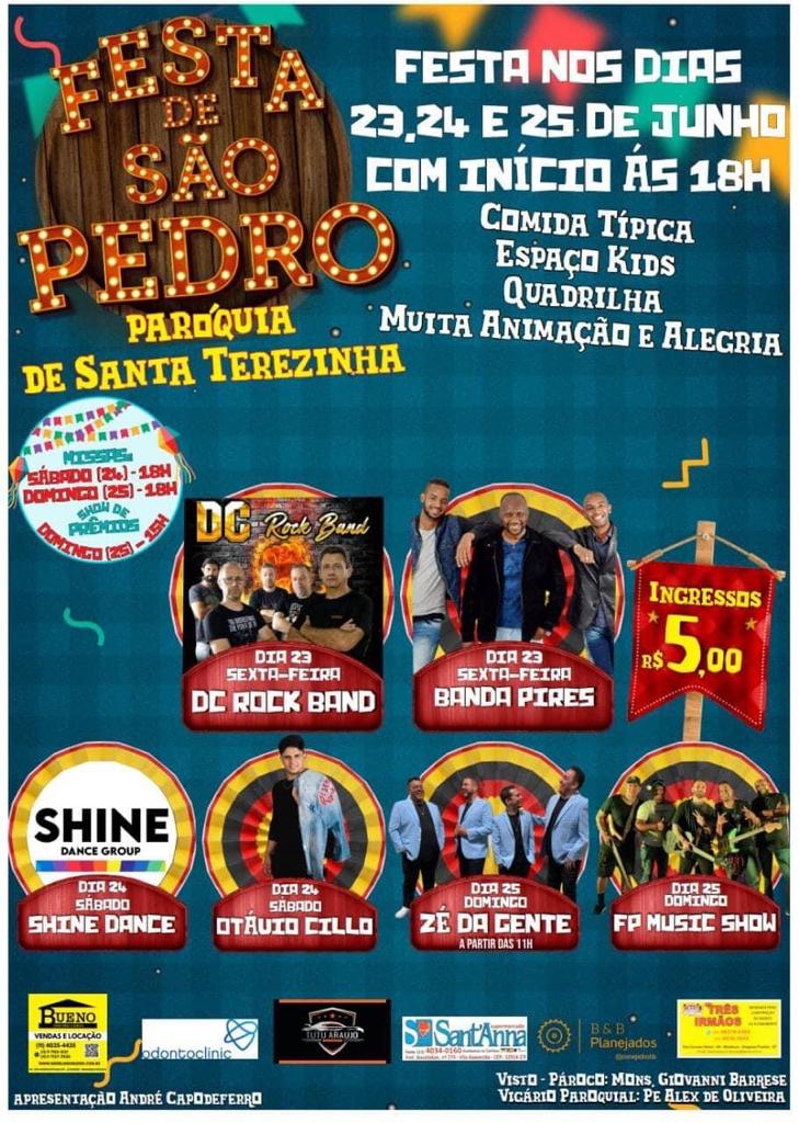 A Igreja de Santa Terezinha realizará nos dias 23, 24 e 25 deste mês, a tradicional Festa de São Pedro. O arraial da Santa Terezinha terá muita comidas e bebidas típicas, espaço kids, quadrilha e atrações especiais e celebração das missas que acontecem no sábado e domingo, às 18h. Haverá também o show de prêmios, […]