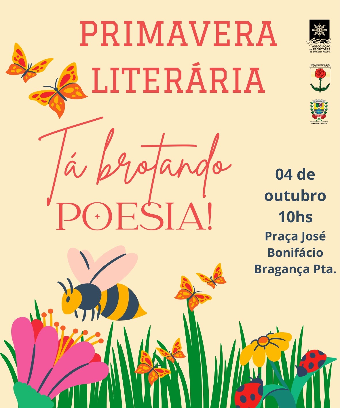 Neste sábado, 4 de outubro, a Associação de Escritores de Bragança Paulista (Ases) realiza duas ações culturais gratuitas no município. Às 10h, em parceria com a União Brasileira de Trovadores – seção Bragança Paulista (UBT), a entidade realiza o evento “Primavera Literária”, em comemoração à chegada da nova estação, na Praça José Bonifácio, a partir […]