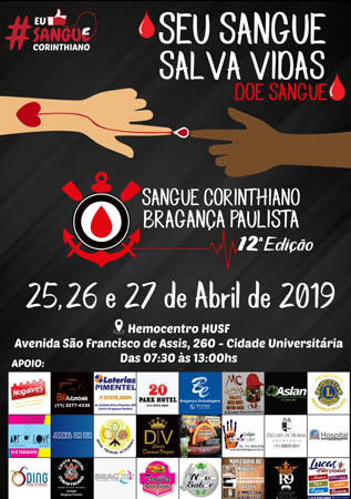 A Campanha Sangue Corinthiano vai realizar nova edição a partir do dia 25. O projeto nacional foi idealizado e promovido pela torcida corintiana, usando a força e união da Fiel para conscientizar a população sobre a importância da doação de sangue. Em Bragança Paulista, a iniciativa tem acontecido pela mobilização de alguns torcedores do Corinthians, […]