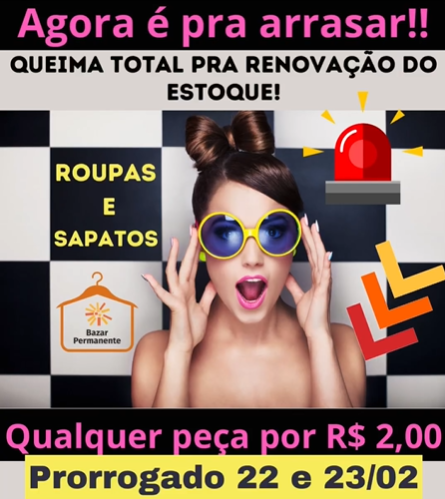 A diretoria da ABCC (Associação Bragantina de Combate ao Câncer) prorrogou o tradicional Bazar Permanente por mais dois dias, hoje, quinta-feira, e amanhã, sexta-feira. A promoção “Queima de Renovação” está imperdível! Para esgotar o estoque de 2023 e dar espaço para novidades neste ano, todas as peças de roupa e sapatos estão sendo vendidas por […]