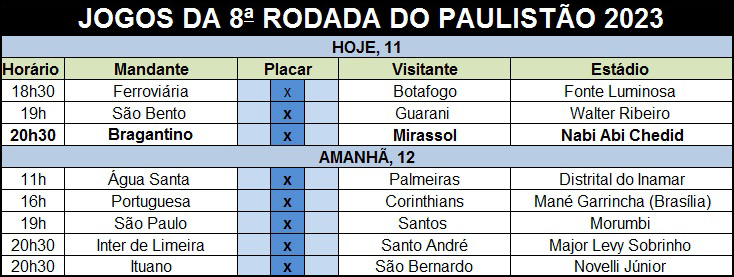 Embalado no Campeonato Paulista depois da grande vitória de virada sobre o São Paulo na última quarta-feira, 8, o Bragantino volta a campo na noite deste sábado, 11, para defender a liderança isolada do Grupo A, contra o Mirassol. A partida, que será válida pela oitava rodada do Paulistão 2023, vai ser disputada novamente no […]