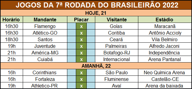 A 7ª rodada do Brasileirão 2022 terá sequência neste final de semana com a realização de nove jogos. Seis partidas estão agendadas para este sábado, 21, e as outras três serão disputadas no domingo, 22. No entanto, os times do Red Bull Bragantino e do Atlético Mineiro não entram em campo nesta rodada, pois o […]