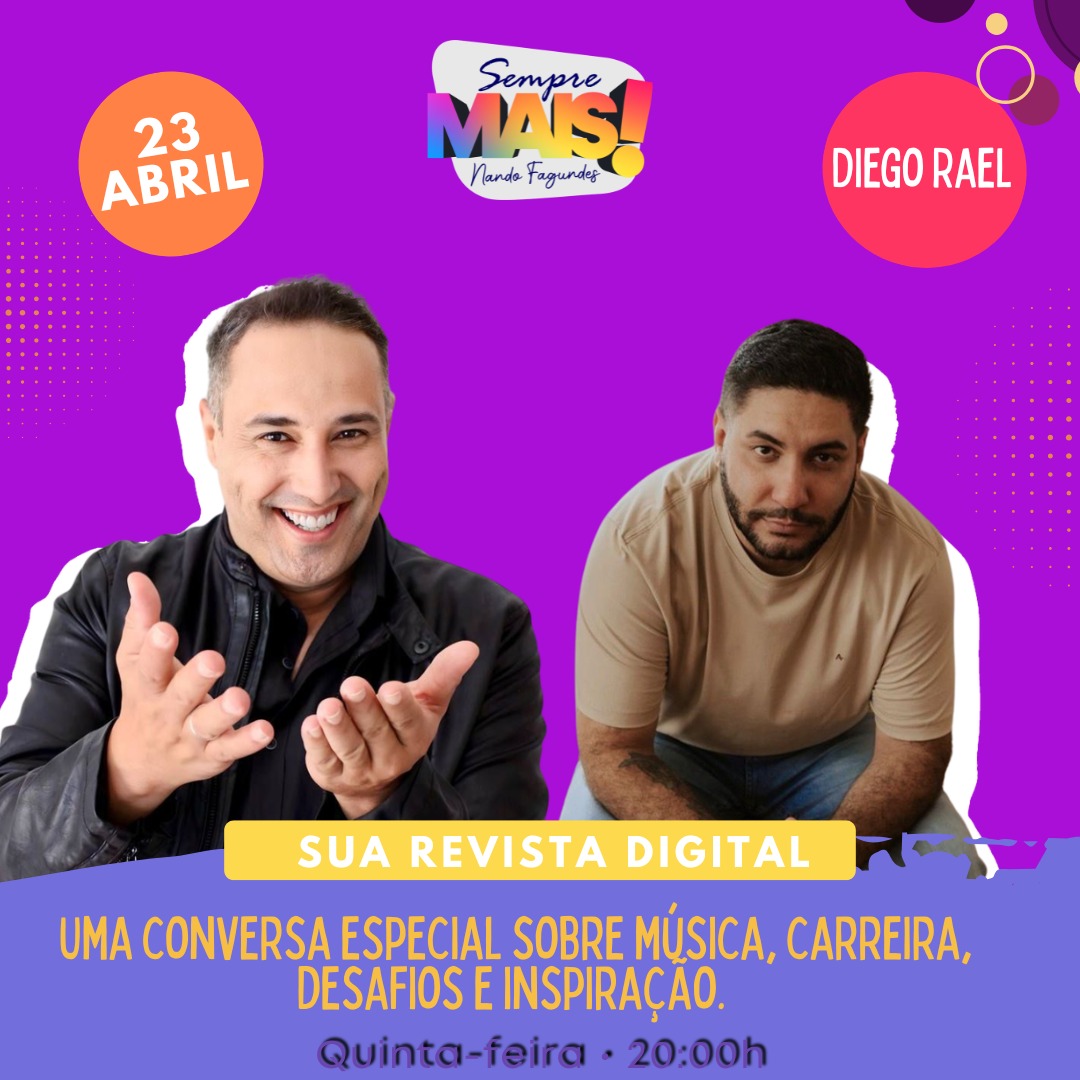 O cenário cultural e do entretenimento ganha um destaque especial nesta semana. O podcast “Sempre Mais”, apresentado pelo influenciador digital Nando Fagundes, recebe nesta quinta-feira o cantor e compositor Diego Rael.