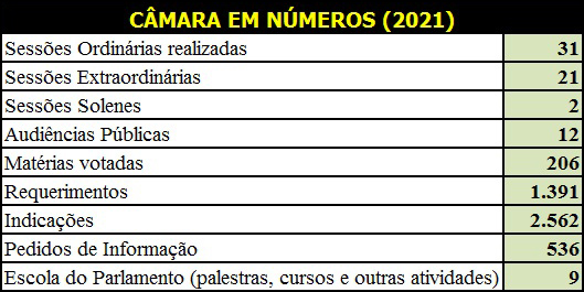 De acordo com a Casa, o menor número de sessões ordinárias foi resultado da paralisação dos trabalhos legislativos em março, abril e maio, causada pela pandemia do coronavírus.