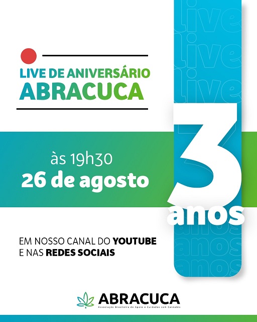 No próximo dia 26, quinta-feira, às 19h30, acontece a Associação Brasileira de Apoio e Cuidados com Cannabis (Abracuca) realiza uma live, em formato de talk show, a fim de difundir informações a respeito de tratamentos com cannabis. A transmissão ao vivo acontece pelo Facebook e pelo YouTube da associação.
