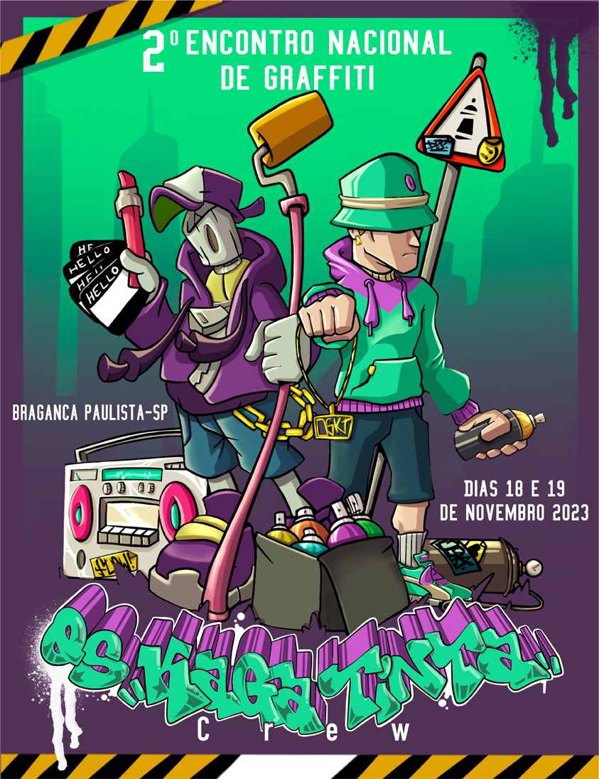 Neste final de semana, Bragança será palco do 2º Encontro Nacional de Graffiti. O evento, realizado pelo grupo “Os Kaga Tinta Crew”, conta com o apoio cultural da Secretaria da Cultura, Economia e Indústria Criativas do Governo do Estado de São Paulo, Associação Paulista dos Amigos da Arte e a correalização da Prefeitura local, por meio da Secretaria da Cultura. Mais de 100 artistas, vindos de diversas regiões do Brasil e até do Chile, transformarão o muro do Parque de Exposições Dr. Fernando Costa (Posto de Monta), em uma galeria de arte a céu aberto. Durante dois dias, das 9h às 22h neste sábado e das 9h às 18h no domingo, o recinto será tomado por cores e desenhos, promovendo não apenas uma manifestação artística, mas também um intercâmbio de conhecimentos e técnicas entre os participantes.