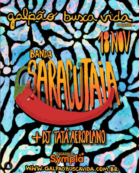 Neste sábado, 18, a partir das 20h, venha dançar e cantar muita brasilidade no Galpão com a Banda Saracutaia no palco e DJ Tatá Aeroplano na pista!