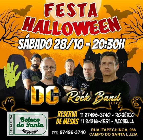 Hoje, a partir das 20h30, o Boteco do Santa preparou uma a Festa Halloween, com presença da DC Rock Band, que promete agitar o público que estiver presente no recinto com muita música e diversão. Para reservas de mesas, ligue: (11) 9 7496-3740 (Rogério) ou (11) 9 4316-4551 (Michella). O Boteco do Santa fica localizado dentro do estádio de futebol do E. C. Santa Luzia na Rua Itapechinga, 988.