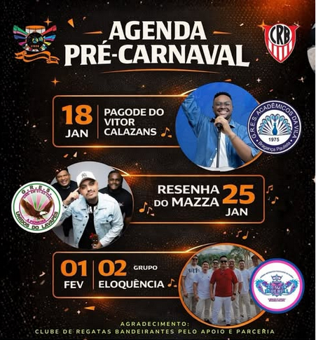 O pré-Carnaval de Bragança Paulista já tem data marcada e promete aquecer a cidade antes da folia oficial. O Clube de Regatas Bandeirantes (CRB) e a Liesb (Liga Independente das Escolas de Samba de Bragança), divulgaram a programação do evento, reunindo escolas de samba locais e atrações musicais, nos três próximos finais de semana (domingo).