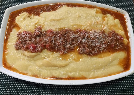 Nesta semana, preparei uma polenta molinha, na verdade, um delicioso angu de fubá, acompanhado de molho de tomates com carne moída. O molho foi feito na véspera, à noite, pelo meu filho Rafael, que nas horas vagas é “expert” na cozinha (siga-o no Instagram @rafao_cozinha_raiz, e Facebook @rafaelchiarion), e adiantou para mim.