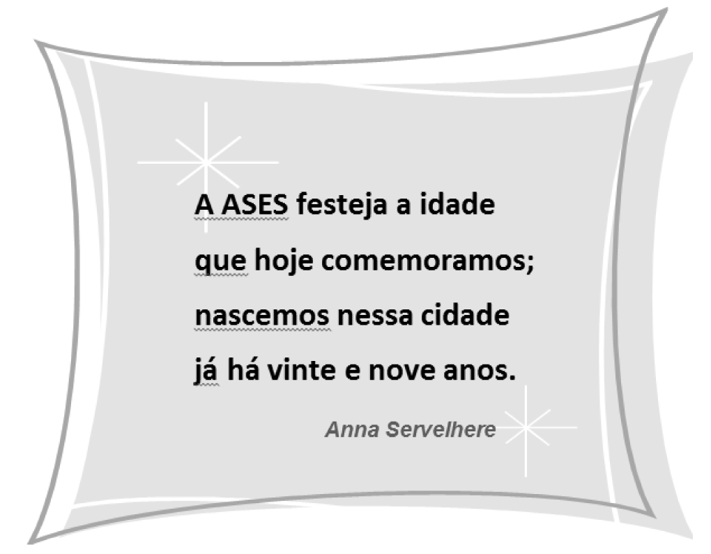 A escritora Henriette Effenberger aproveitou a oportunidade para enviar uma carta dirigida a todos os participantes e simpatizantes da Ases, relatando a trajetória da fundadora e pioneira Lóla Prata, relembrando os sócios fundadores, os presidentes que lideraram a associação nesses 29 anos e o legado que deixou cada um para a entidade.