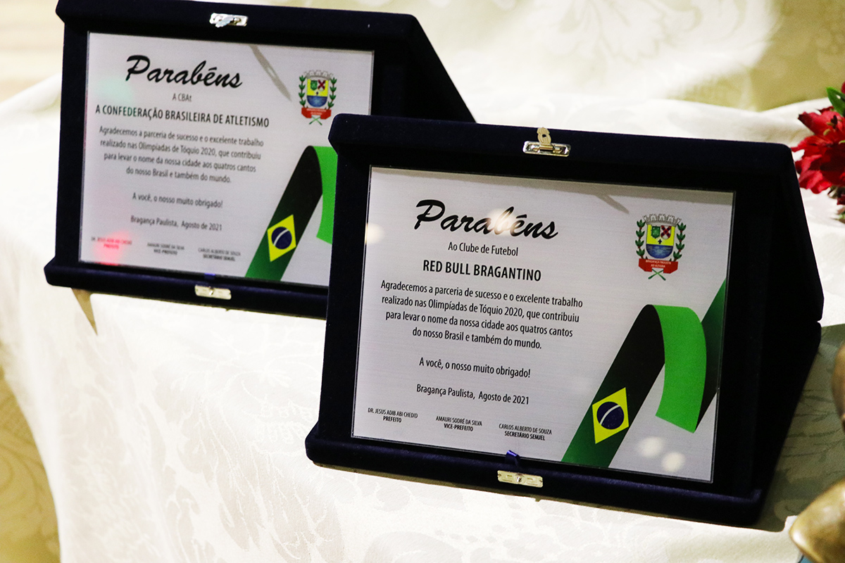 Na última quinta, 19, a Prefeitura Municipal realizou ato solene com entrega de Cartão de Prata e das Comendas Ignácia da Silva Pimentel e Antônio Pires Pimentel, em homenagem aos atletas e técnicos que escolheram Bragança Paulista para viver e que participaram da Delegação Brasileira dos Jogos Olímpicos de Tóquio 2020.