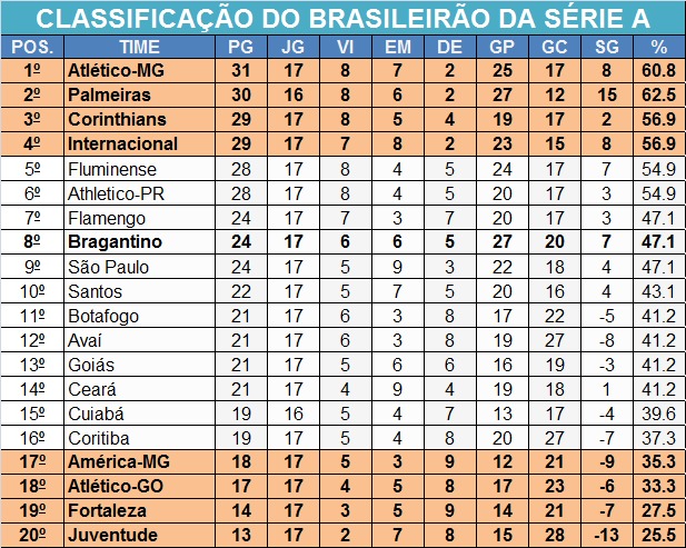 Com esse resultado o Massa Bruta vai a 24 pontos ganhos e pula da 11ª para a oitava colocação na classificação do Campeonato Brasileiro. O time comandado pelo técnico Maurício Barbieri, chega aos 27 gols marcados e, ao lado do Palmeiras, tem o melhor ataque da competição nacional.