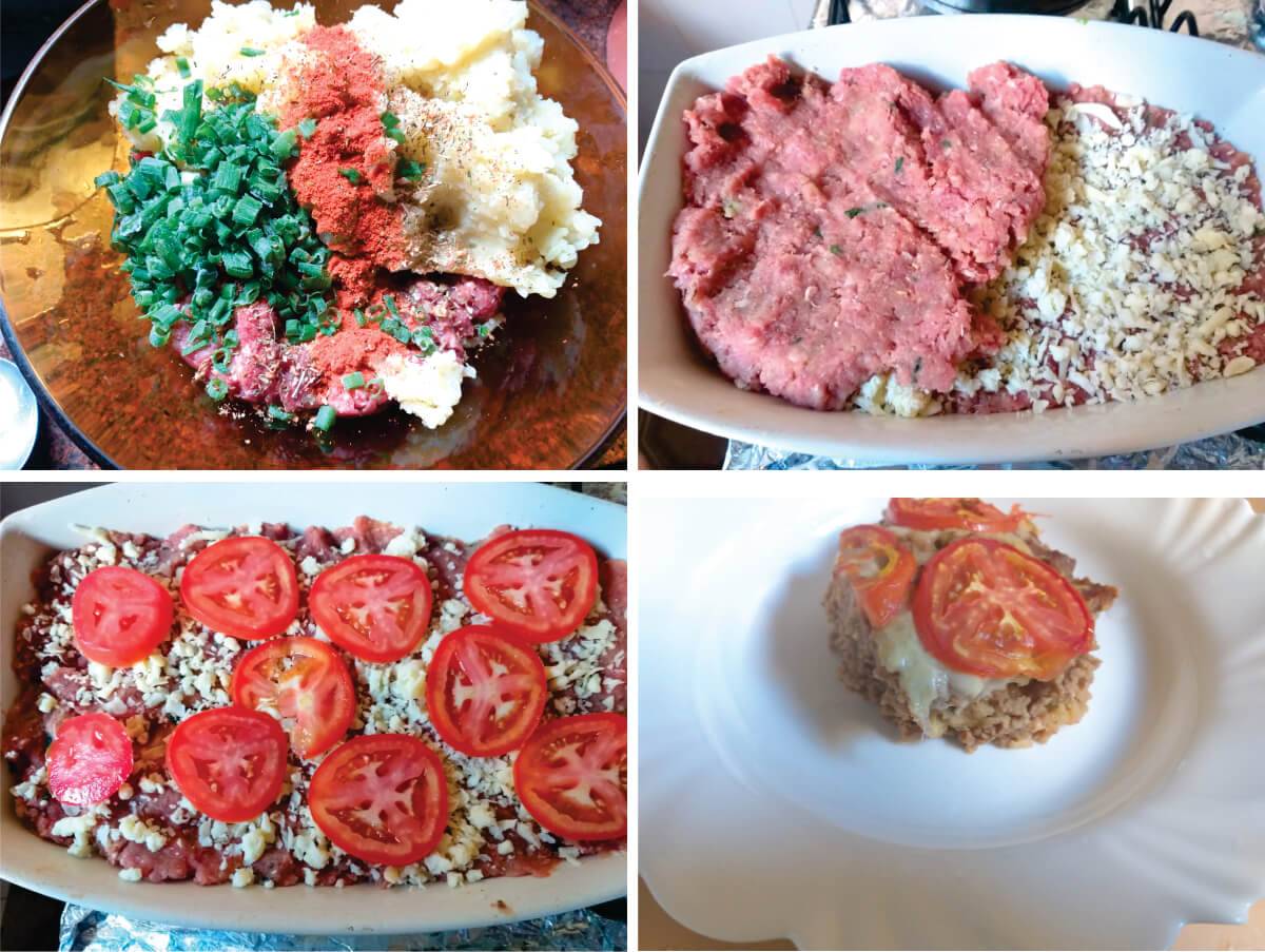 Além de ser um prato que pode ser preparado com certa antecedência e deixar para levar ao forno quase na hora do almoço, a carne fica suculenta e bem úmida ao paladar, pois a ela se mistura batata cozida e espremida, segredo que faz toda diferença.