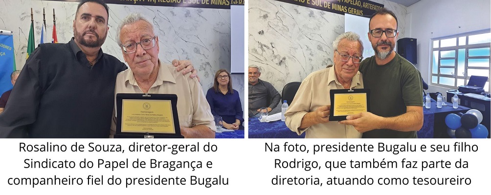 Betinho, presidente da Federação do Papel dos Estados de São Paulo e Mato Grosso do Sul, esteve ao lado de Bugalu prestigiando a posse e a comemoração dos 30 anos do Sindicato do Papel de Bragança Paulista